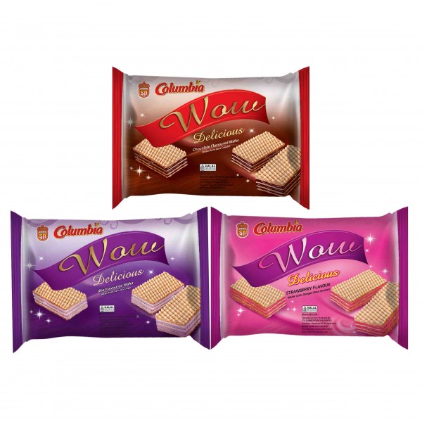 Get ready for a flavor explosion with our Columbia Wafer Wow 6-Pack! This special pack includes 6 boxes, with each box containing 10 individually wrapped wafers—perfect for sharing with friends and family, or for stocking up on your favorite treat. Each bite delivers a satisfying crunch followed by a rich, creamy filling. Whether you're looking for a quick snack at home, a tasty addition to your lunchbox, or a sweet treat to get you through the day, these wafers are a fantastic choice. This variety pack features three delicious flavors: Ube: A delightful twist with the unique, sweet, and nutty flavor of ube (purple yam). Strawberry: A classic favorite with a burst of sweet and fruity strawberry cream. Chocolate: A rich and decadent chocolate flavor that's simply irresistible. Enjoy the crunch, savor the cream, and find your favorite flavor!