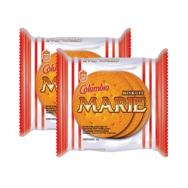 Columbia Marie Milk Biscuits are a classic favorite for all ages. Made with a blend of select flour and milk, these biscuits have a crispy texture and a light, milky sweet taste. The round shape with the signature Marie biscuit pattern makes them easy to hold and enjoy. Product Features: Authentic Milk Flavor: Made with milk powder, these biscuits have a delicious, not-too-sweet milk aroma and taste. Crispy Texture: The crunchy texture makes them perfect for eating on their own or dipping into hot tea, coffee, or warm milk. Sachet Strip Packaging: Sold in a convenient sachet strip, making it practical and hygienic for single-serve sales or for stocking up at home. Columbia Marie Milk Biscuits are an ideal snack for your relaxing moments, whether in the morning, afternoon, or evening. They're perfect for the whole family to enjoy.